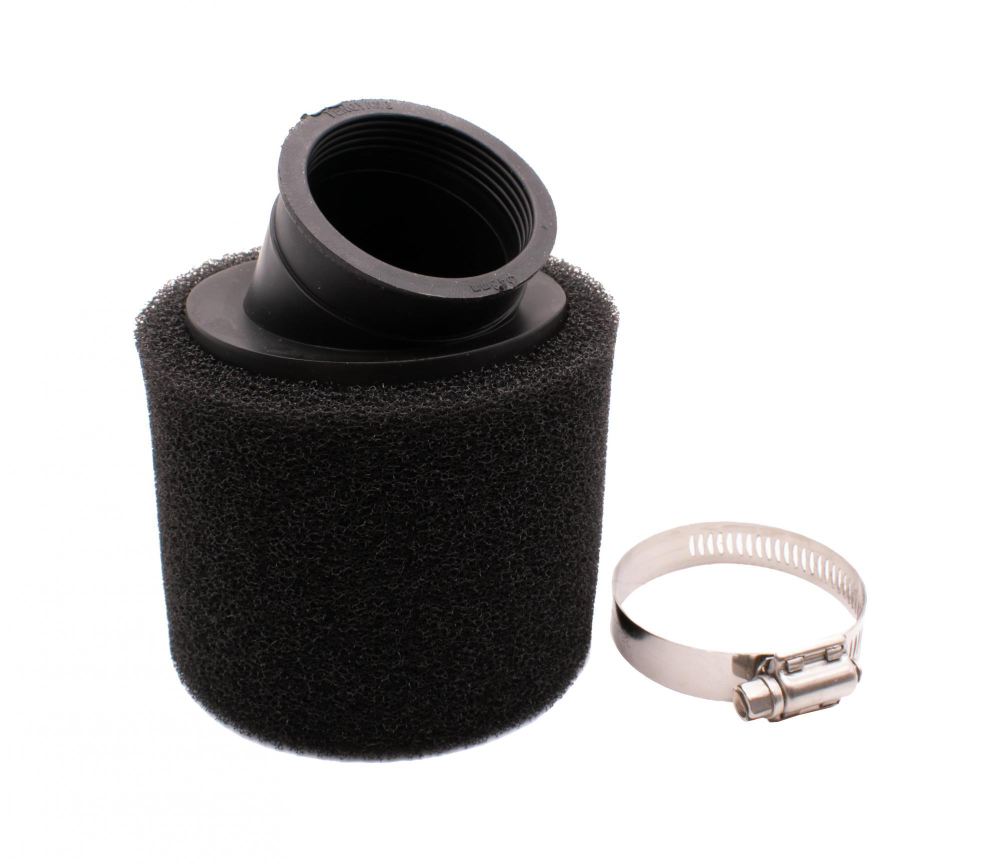 Воздушный поролоновый фильтр нулевого сопротивления для питбайков. Фильтр состоит из прочного резинового патрубка, который плотно садится на раструб карбюратора и обжимается червячным хомутом, двухслойного, поролонового, фильтрующего элемента и спиральной несущей пружины. Обязательным условием применения фильтра является использование пропитки для фильтров. Поролоновый фильтр нулевого сопротивления необходимо периодически промывать и заново наносить липкий пропитывающий состав. Посадочный диаметр фильтра 48 мм. Существуют прямые и изогнутые фильтры. Подходят  карбюраторов, используемых на питбайках, мотоциклах, квадроциклах. Карбюраторы типа KEIHIN PE 28, PZ 30, JinKe, NIBBI и другие.